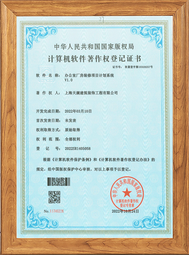 上海天瀾建筑裝飾工程有限公司由熱愛裝修事業的專業人士創辦,經上海工商行政管理局注冊登記的專業上海工裝公司。天瀾建筑裝飾注冊資本5000萬,擁有建筑施工總承包三級,鋼結構工程專業承包三級建筑裝飾工程專業承包二級,建筑機電設備安裝專業承包三級,消防設施工程專業承包二級等資質。國家建筑裝飾裝修工程設計與施工二級資質單位、上海市建筑裝飾裝修行業協會會員單位、有上海市建設和交通委員會頒發的“安全生產許可證”。