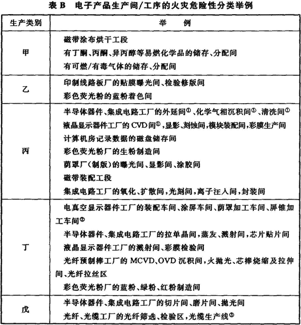 附錄B 電子產品生產間/工序的火災危險性分類舉例