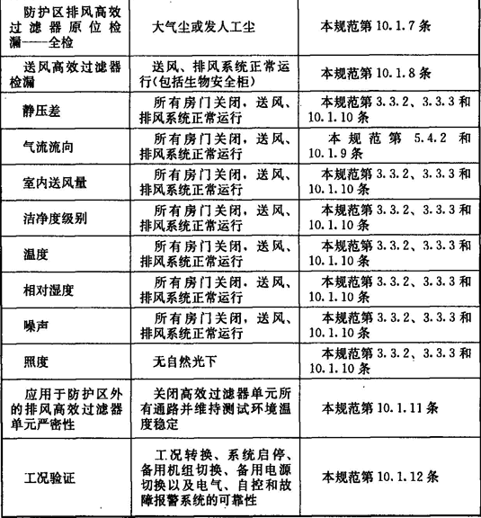 10.1.10 靜壓差、送風量、潔凈度級別、溫度、相對濕度、噪聲、照度等室內環境參數的檢測方法和要求應符合現行國家標準《潔凈室施工及驗收規范》GB 50591的有關規定。