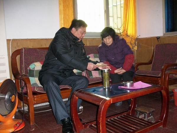 在慰問身患尿毒癥的退休干部張炎祥時,檀經理握著老人的手,仔細詢問著他的病情和身體情況。檀經理說,前幾天市公司周閩經理剛剛上任就到望江來調研和慰問,給您老帶來了省、市公司的關懷和幫助。今天我們剛從縣總工會領到了為您爭取的大病救助金,這個救助金額是今年縣總工會發放的最高標準,此外,單位也經研究給發放了您一些救助金,希望您安心養病,安享晚年。張老激動地握住檀經理的手,不住地感謝組織和領導的關懷。