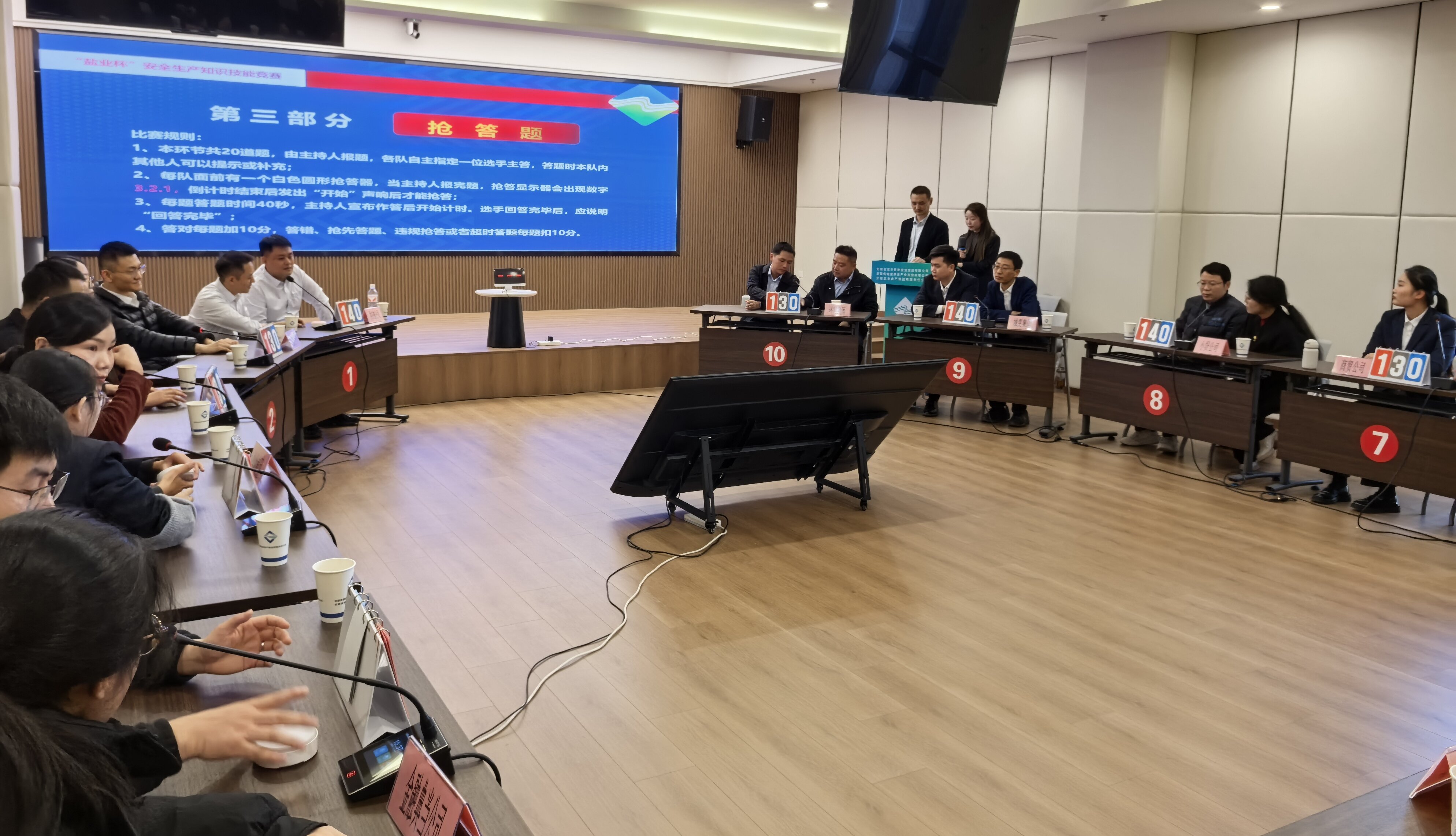 本次競賽以“人人講安全,個個會應急——查找身邊安全隱患”為主題,聚焦政策法規和實踐操作,旨在全面提升干部職工對危險、有害因素的辨識能力與應急處置技能,堅決防范生產安全事故發生。經過前期籌備,來自集團所屬企業的10支代表隊同臺競技,各代表隊冷靜答題、奮勇爭先。“各顯身手”個人必答和“齊心協力”團隊必答環節穩扎穩打,展現扎實知識儲備;“爭分奪秒”搶答環節分秒必爭,考驗快速反應能力;“勇攀高峰”風險環節深入分析,實現理論實踐深度融合。尤其在風險題環節,選手們根據實際案例查風險、找隱患,展現了對政策法規知識的準確理解和解決實際問題的良好能力。
