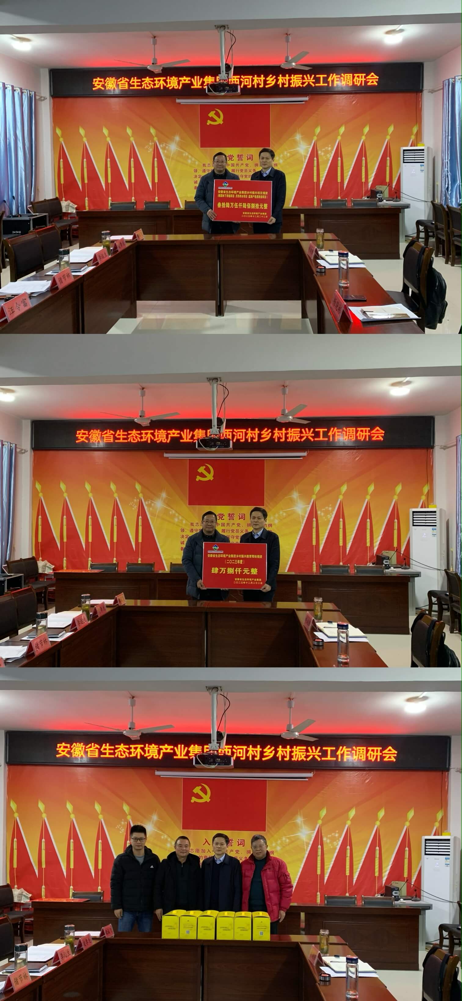 會后,雙方開展了集團(tuán)2023年度項(xiàng)目幫扶和教育幫扶捐贈儀式,同時楊曉彬代表集團(tuán)公司黨委為駐村工作隊(duì)隊(duì)員送上“關(guān)心關(guān)愛”物資,向他們表示慰問。