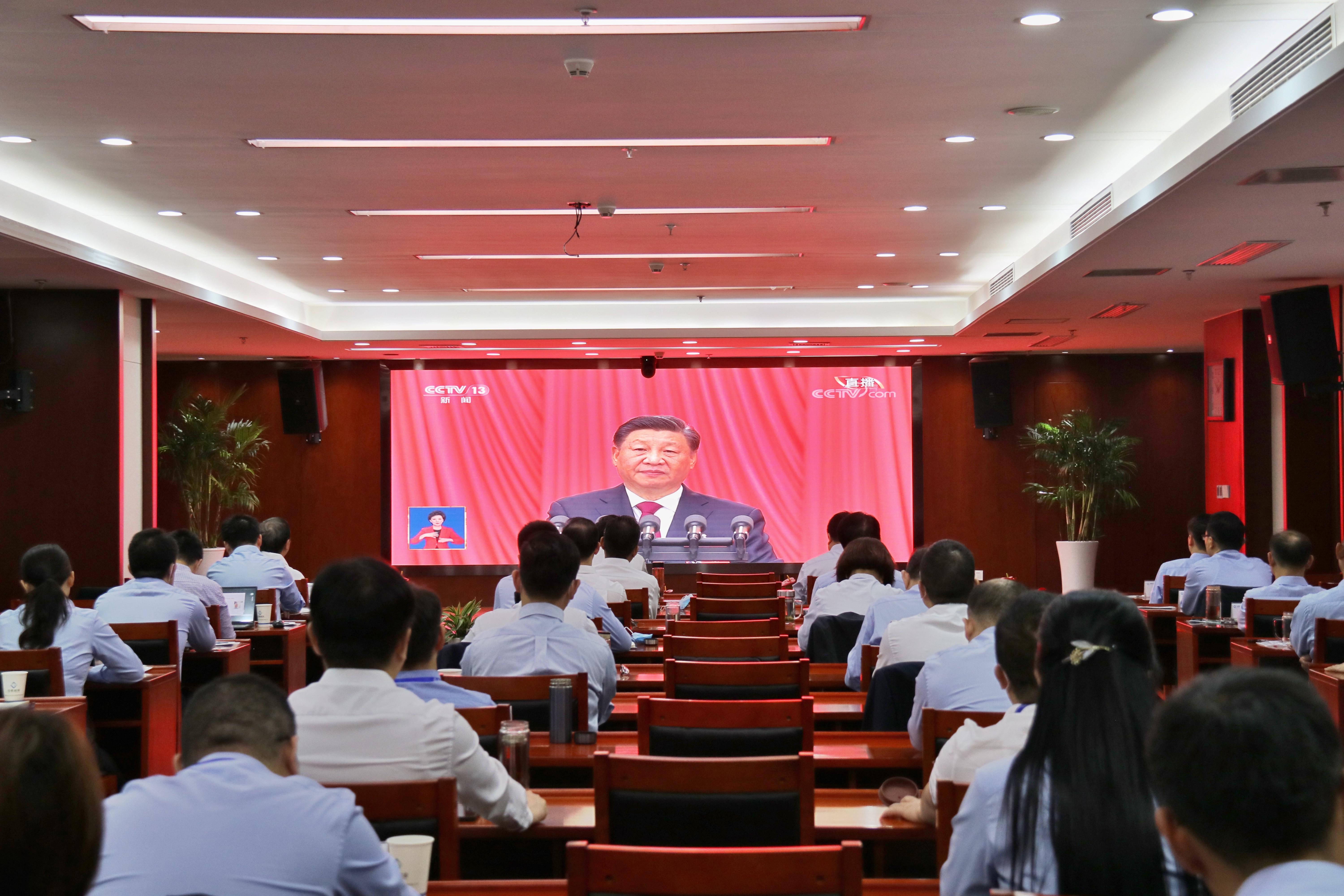 集團公司黨政領導班子、中層以上干部職工及本部全體黨員集中收看黨的二十大開幕會