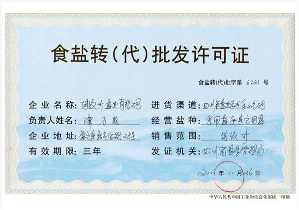 以往食鹽由持有《食鹽定點生產企業證書》的企業生產,出廠鹽產品由鹽業公司收購。鹽業公司作為本地唯一持有《食鹽批發許可證》的食鹽一級批發商,對其委托持有《食鹽轉(代)批發許可證》的中間批發商及零售商、食品加工用鹽單位批發供應食鹽。以銷售渠道單向長度計的中間批發商分食鹽二級及或還有三級批發商,其持有的《食鹽轉(代)批發許可證》進貨渠道項目,載明為委托批發的“鹽業公司”。