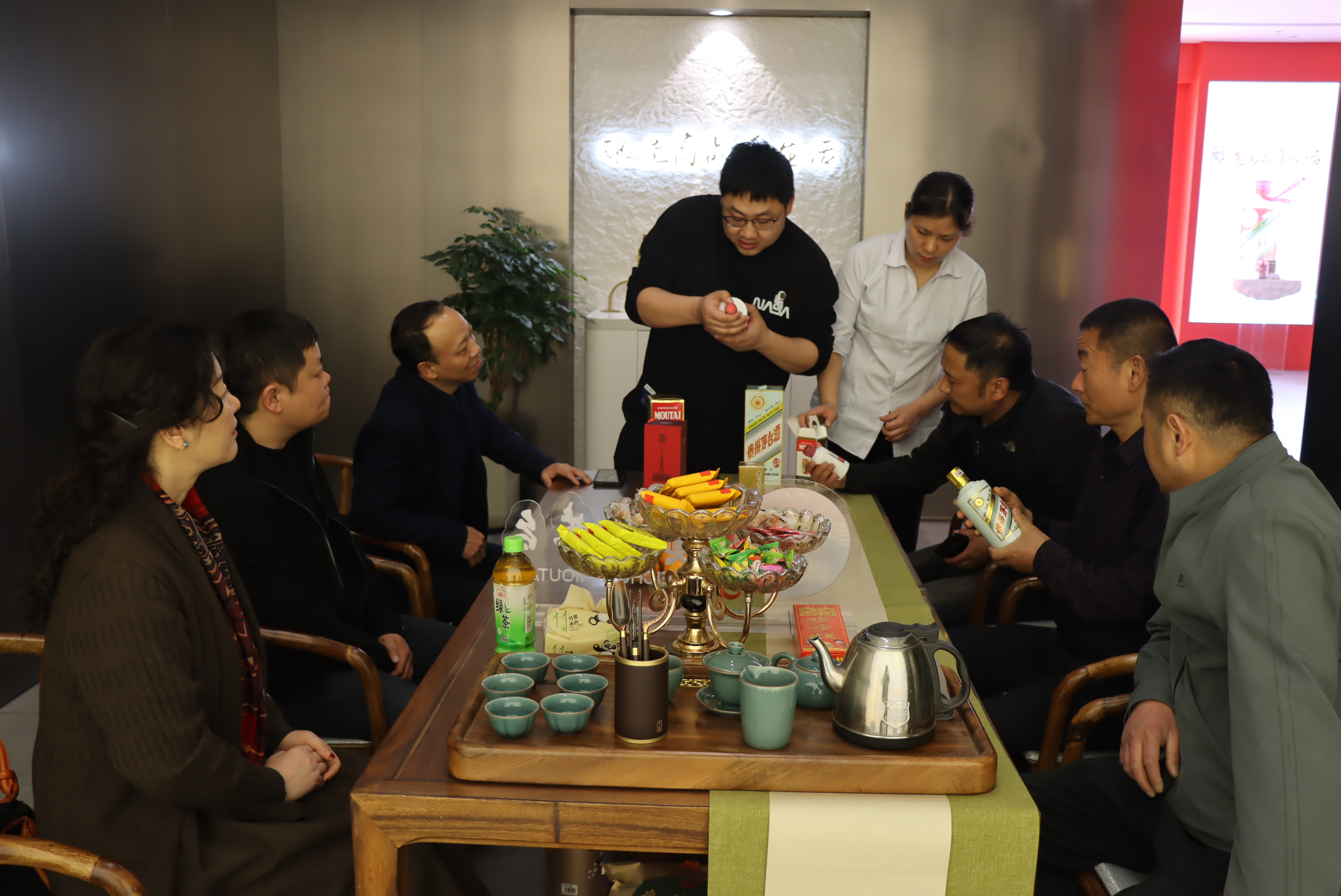 活動(dòng)中,專賣店店員為客戶們?cè)敿?xì)介紹了i茅臺(tái)線上產(chǎn)品,宣傳茅臺(tái)知識(shí),貴州茅臺(tái)酒品質(zhì)卓越,具有“醬香突出、幽雅細(xì)膩、酒體醇厚、回味悠長(zhǎng)、空杯留香持久”的酒體特點(diǎn),茅臺(tái)酒的香氣特征被剖析為9大類香氣,包括:花香、水果香、青草香、甜香、焙烤香、干植物香、醬香、酸香及其它香氣,這些呈現(xiàn)不同香氣特征的物質(zhì)組成了茅臺(tái)酒復(fù)雜的香氣特征。其以獨(dú)特高品質(zhì)的釀造工藝成為中國(guó)白酒的“活化石”。中國(guó)大曲醬香型的代表和鼻祖。在中國(guó)酒文化中占據(jù)極為重要的地位。
