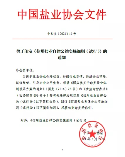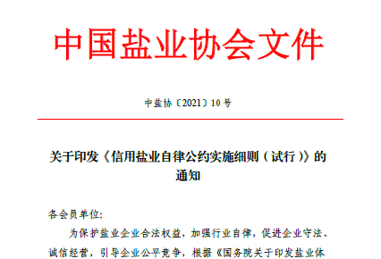 此次中國鹽業協會發布的《<信用鹽業自律公約>實施細則(試行)》,可以說是對2017年《信用鹽業自律公約(試行)》的有益補充。