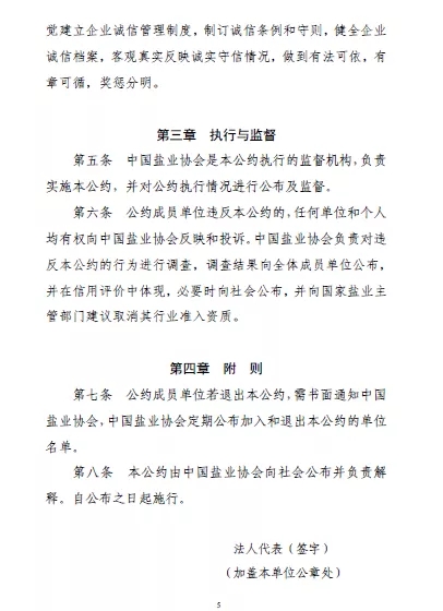 對違反《信用鹽業自律公約(試行)》,導致行業利益受損的單位,根據行為內容和情節嚴重程度,作出了相對具體的約束性規定。