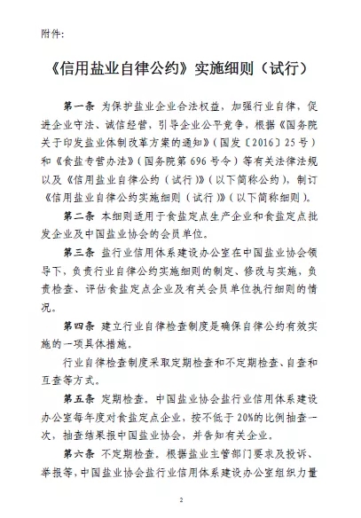 要了解《<信用鹽業自律公約>實施細則》(試行)的相關內容,首先要從《信用鹽業自律公約》(試行)說起。