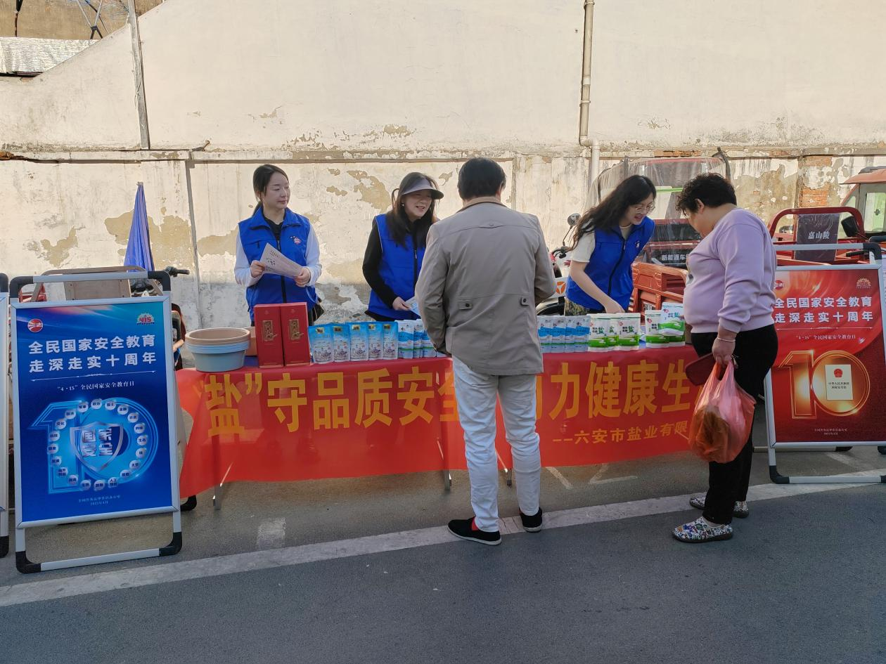 國家安全,人人有責;鹽業安全,惠及萬家!2025年4月15日是我國第十個“全民國家安全教育日”,為深入貫徹落實總體國家安全觀,增強全民國家安全意識,安徽省六安市鹽業有限公司積極響應號召,緊緊圍繞“全民國家安全教育 走深走實十周年”主題開展形式多樣的普法宣傳活動,切實推動國家安全理念深入人心。